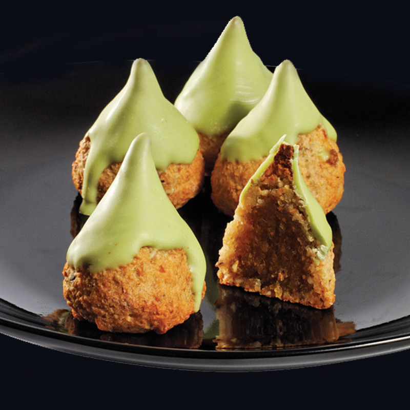 Ingrédients : Noyau d’abricot, semi-fini (sucre, farine de haricot, eau, noyau d’abricot, huile de palme, amidon, conservant: E200, aromes), préparation a la cerise (cerises, sirop de glucose-fructose, sucre, acidifiant: E300, conservateur: ANIDRIDE SULFEREUSE, colorant: E163), sucre, moutarde de Bologne (pomme coing, sirop de glucose-fructose, sucre, acidifiant: acide citrique, gélifiant: pectine, colorant: E150d conservant: sorbate de potassium, aromes), sucre glacée (sucre, amidon de mais), BLANC D’ŒUF, sirop de sucre, préparation l’orange (zestes d’orange, sirop glucose-fructose, sucre, acidifiant: E330), poudre a lever: E450i, E500ii, bicarbonate d’ammonium, amidon, conservant: acide ascorbique. Allergènes: FRUITS A COQUE (noyau d’abricot), ŒUF, ANIDRIDE SULFEREUSE.