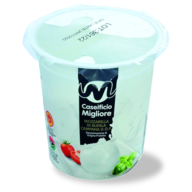 La Mozzarella de Bufflonne DOP au Lait Cru est une variété raffinée de mozzarella italienne, élaborée à partir de lait cru de bufflonne. Reconnaissable par sa texture délicate et son goût distinctif, cette mozzarella bénéficie de l'appellation d'origine protégée (DOP), garantissant son authenticité et sa qualité.